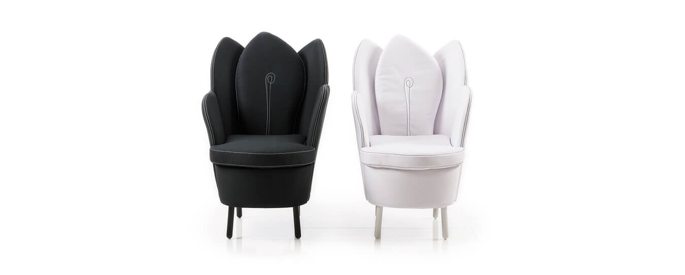 Lehnen und Rücken, die der Form von Blütenblättern nachempfunden sind bieten zusammen mit der hochwertigen