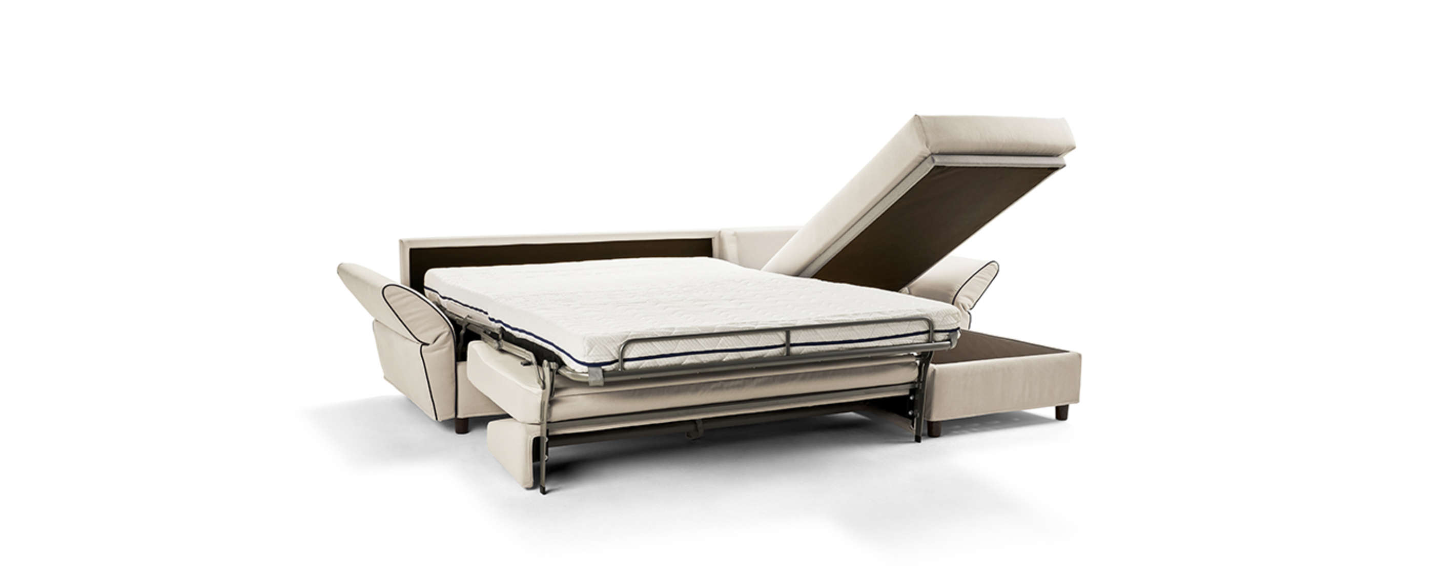 Das Schlafsofa mit Matratze.