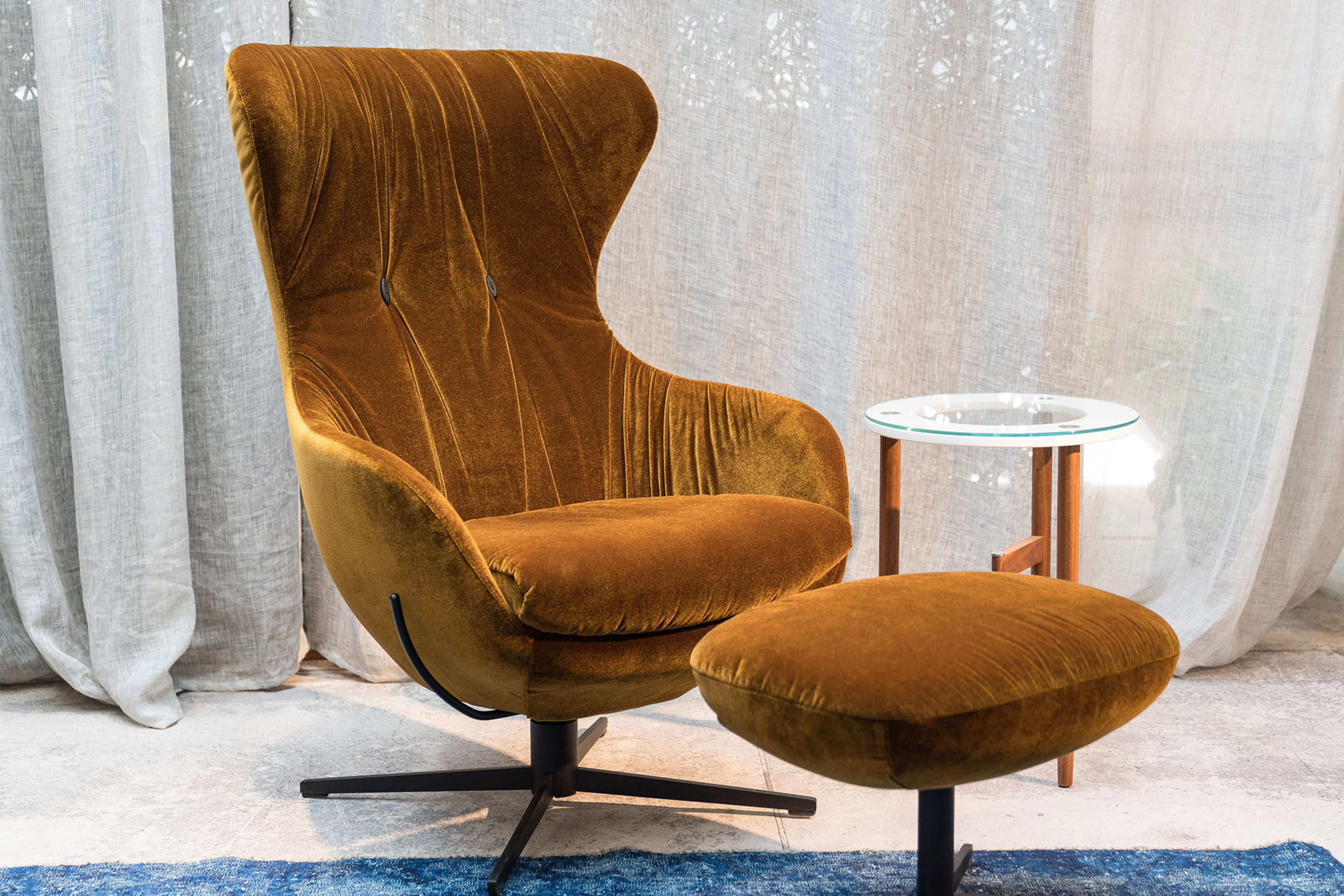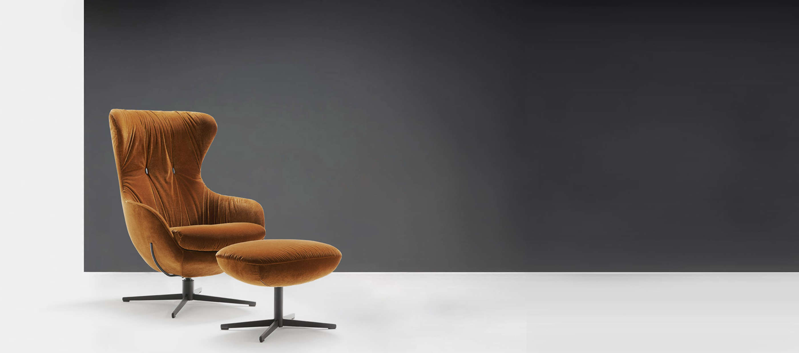 Zur Individualisierung des Shar Pei Sessels können Sie neben dem Bezug das Untergestell wählen. Das Drehkreuz